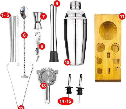 15PCS Cocktail Shaker Set review: Complete 15-piece stainless steel bartender kit with bamboo stand, solid build, easy cleaning and beginner-friendly recipes.!!
