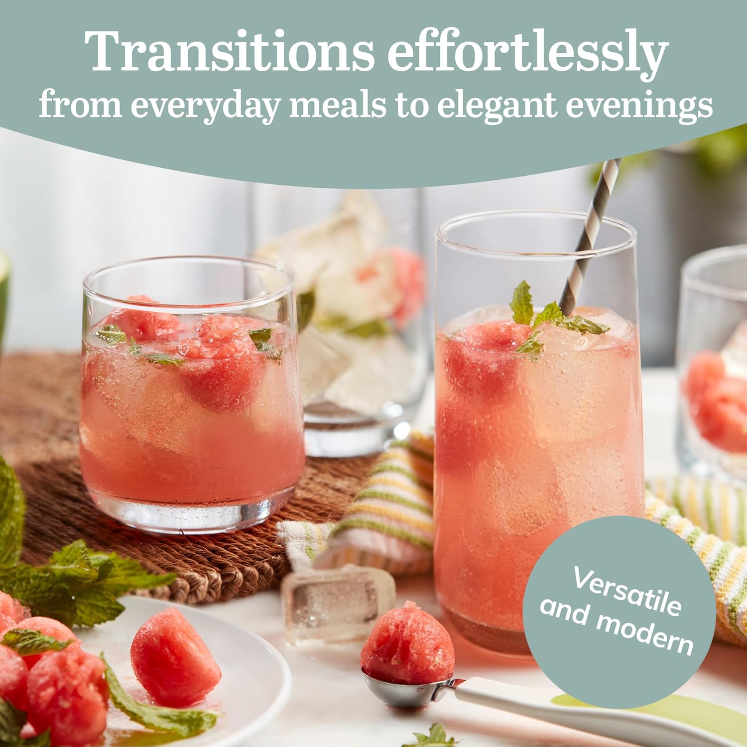 - Well-suited for cocktails, water, juice, soda, and casual entertaining